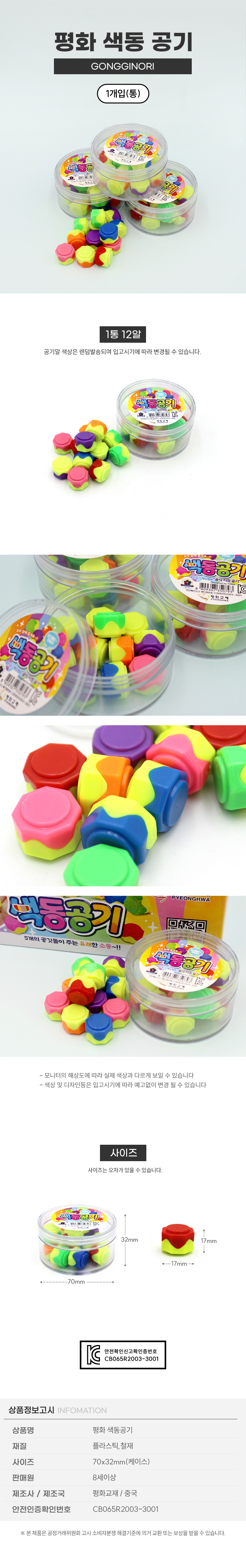 평화 2000 색동공기 1통(12알) 요약정보 및 구매
