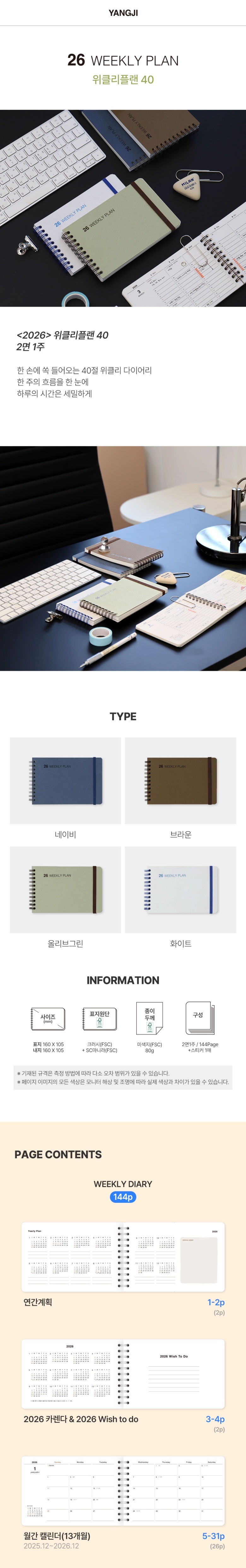 • 2026 양지 다이어리 위클리플랜 40 2면 1주 160×105mm