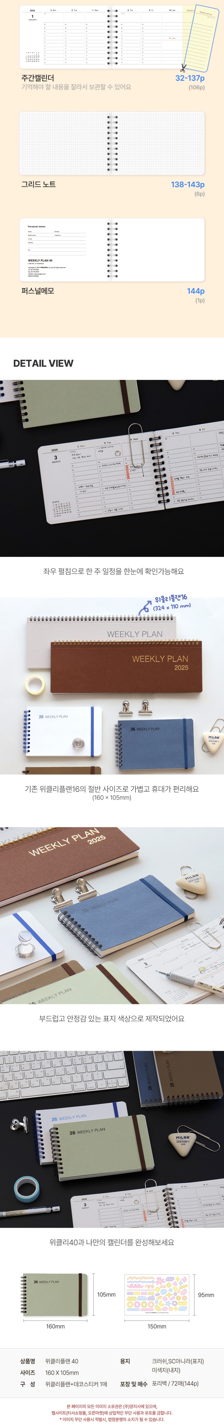 2026 양지 다이어리 위클리플랜 40 2면 1주 160×105mm > 다이어리