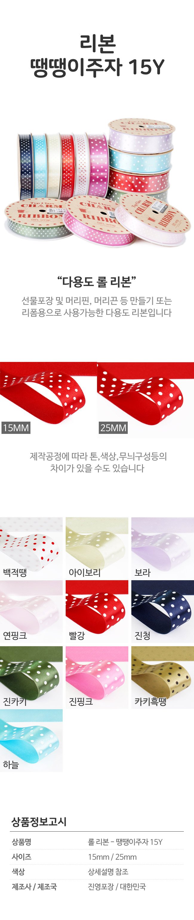 리본 땡땡이 주자 15mmx15Y 선물포장 요약정보 및 구매