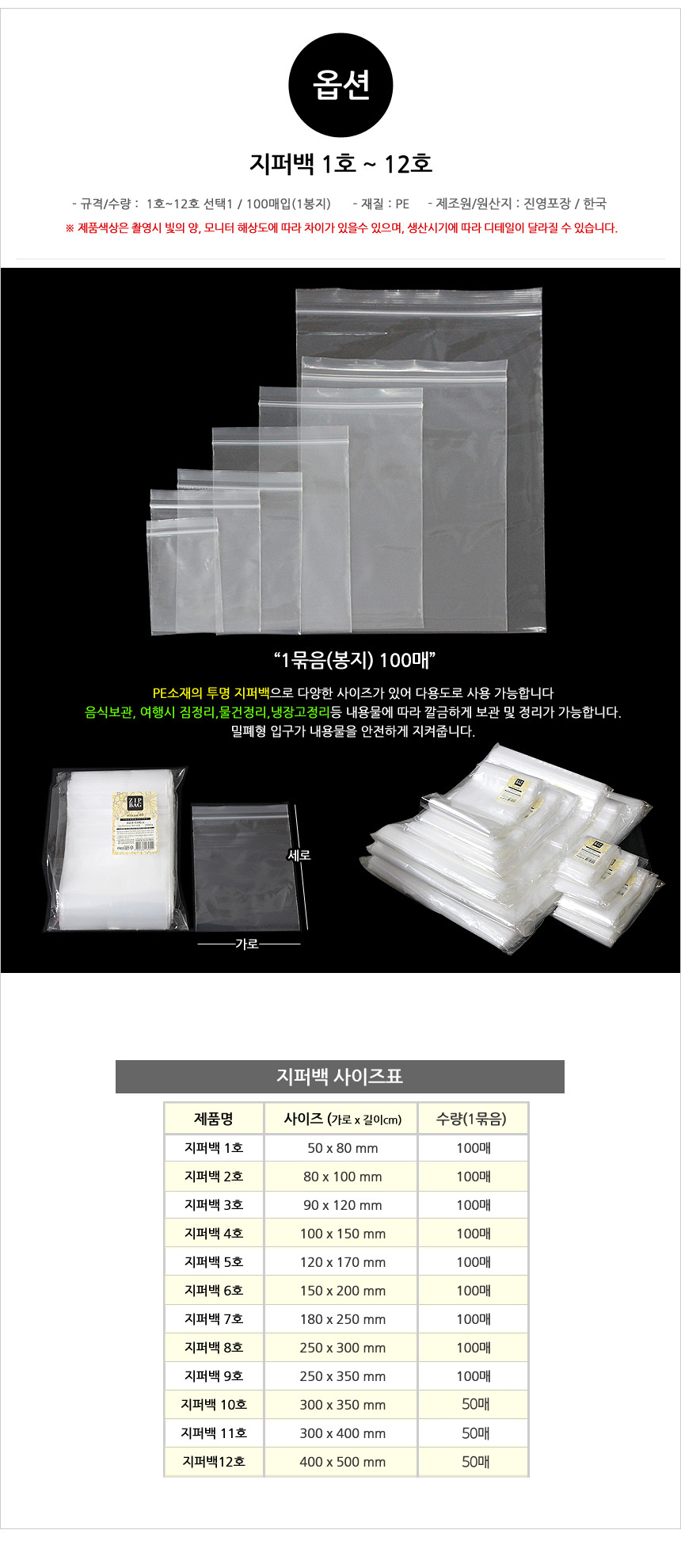 • 지퍼백9호(100매)