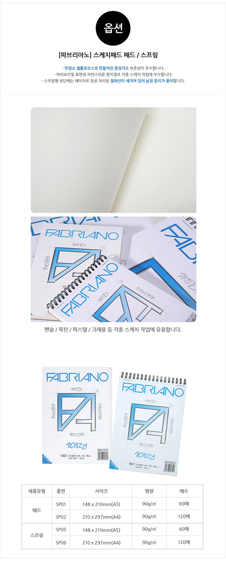 파브리아노 스케치패드 스프링 - SP06(A4/90g) 요약정보 및 구매
