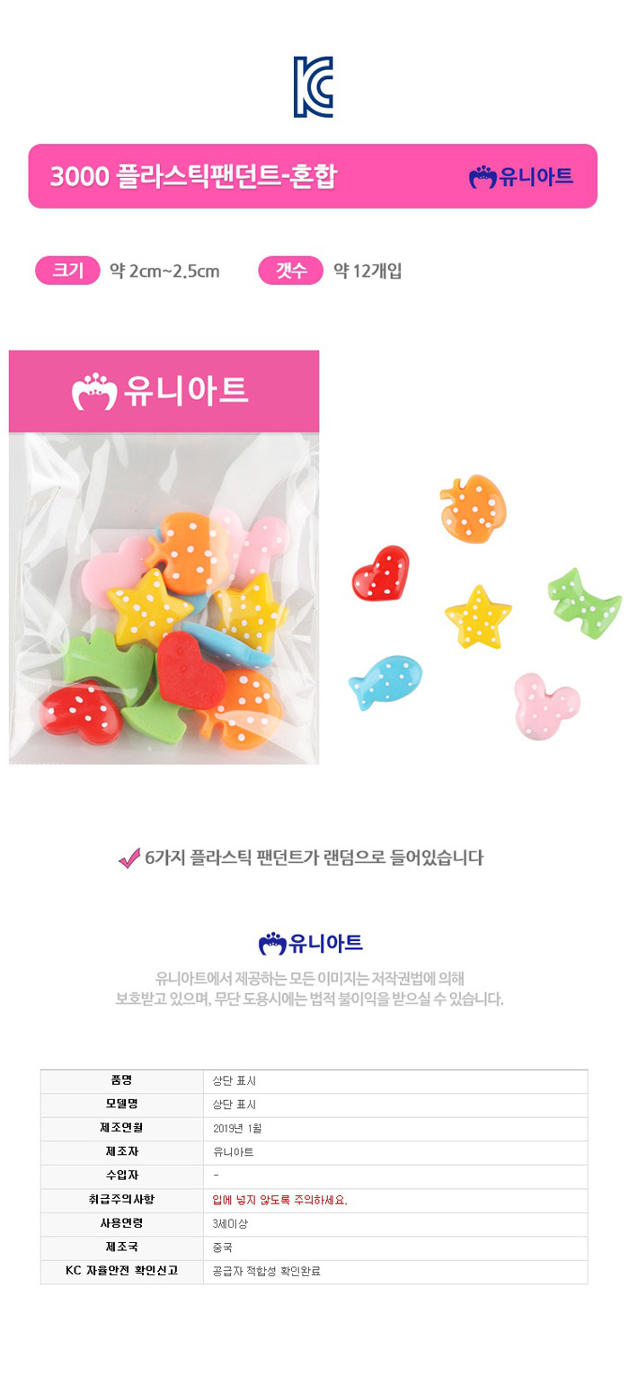 유니아트 3000 플라스틱 팬던트 혼합 > 비즈 만들기 재료