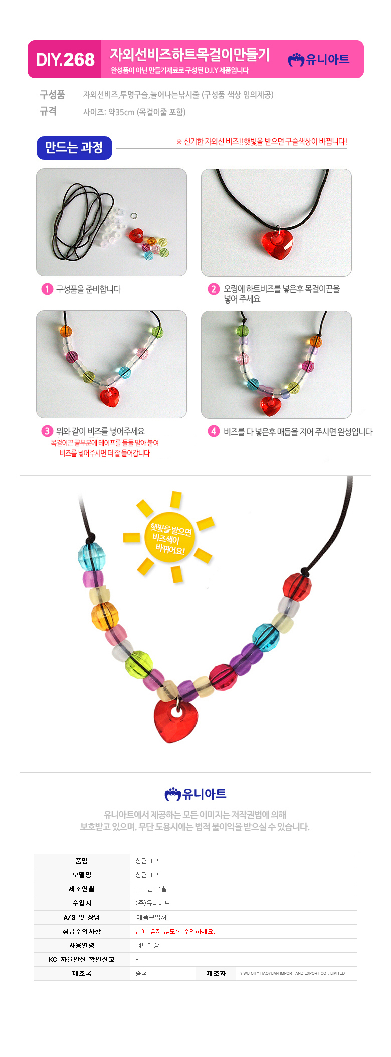 유니아트 1500 자외선 비즈하트 목걸이 만들기 요약정보 및 구매