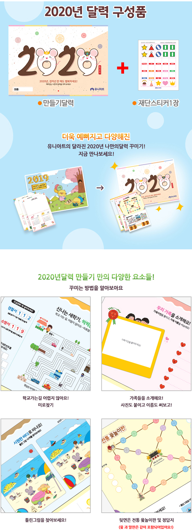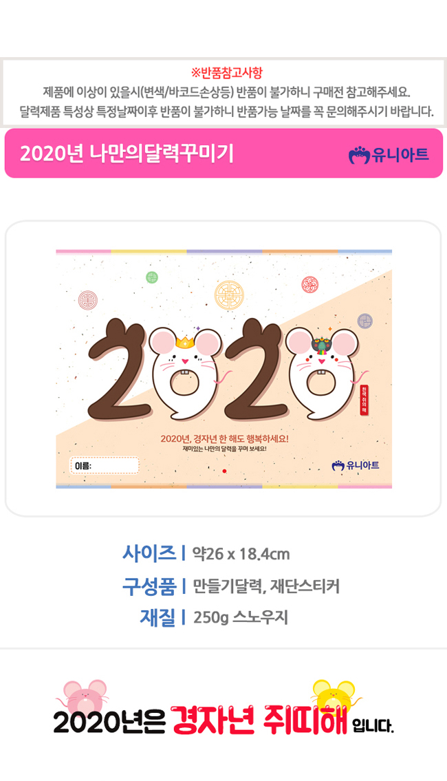 • 유니아트 2020년 나만의 달력 꾸미기 벽걸이용