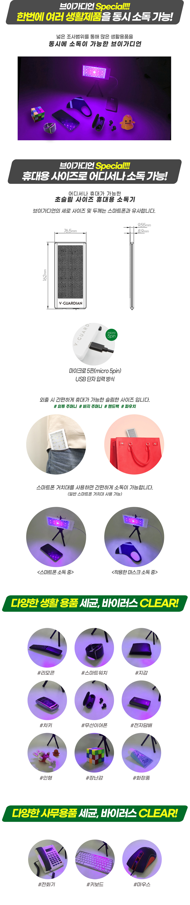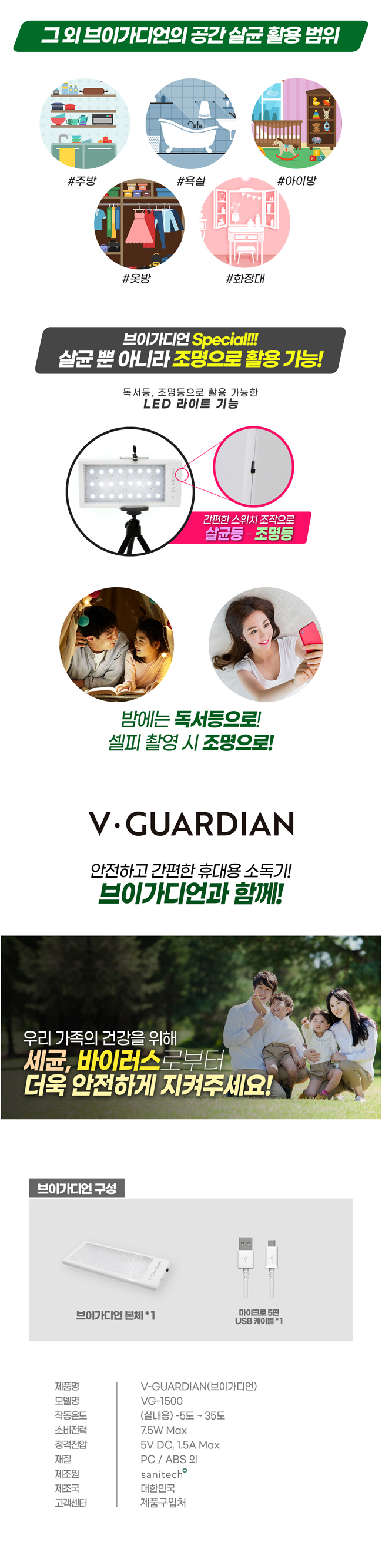 • 브이가디언 VG-1500 휴대용 다목적 살균기 인체무해 소독기