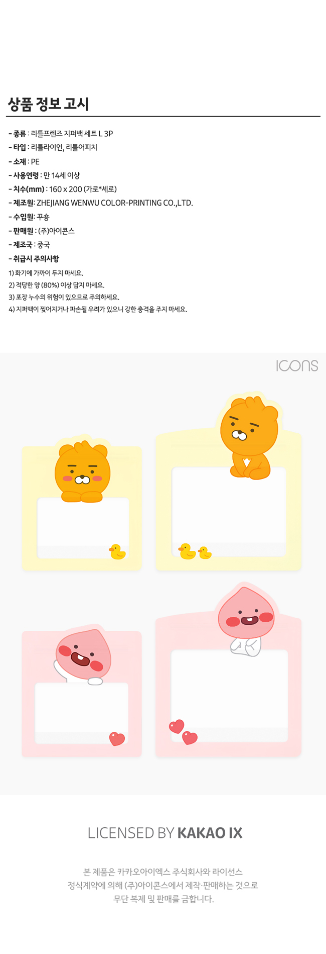 카카오 프렌즈 지퍼백 세트 L 3P 160x200mm 라지사이즈 요약정보 및 구매