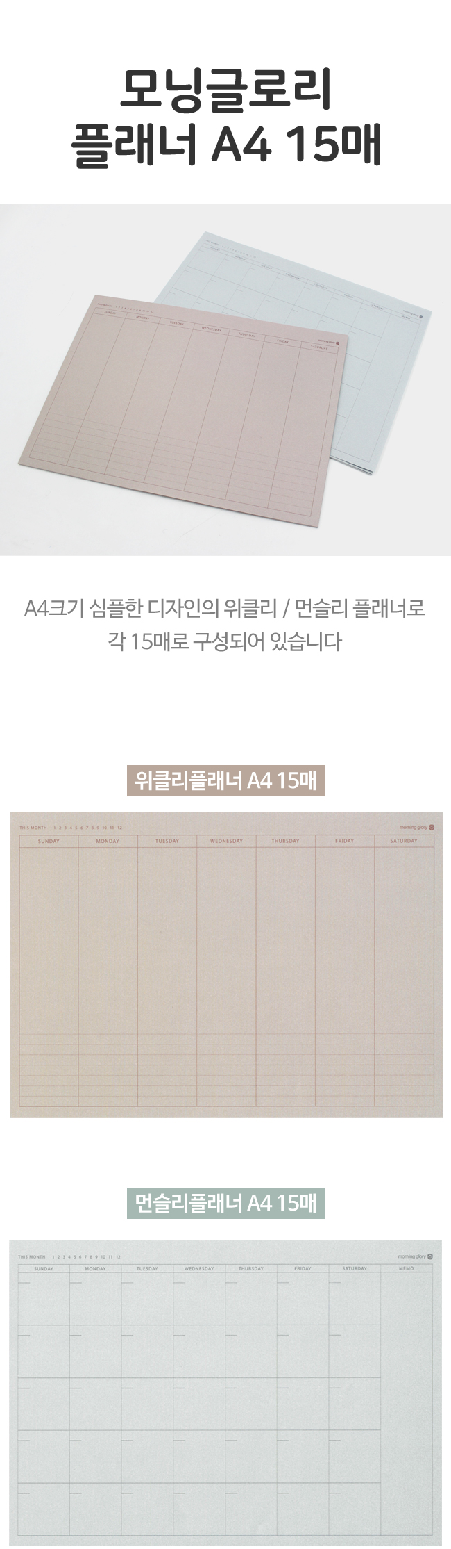 • 모닝글로리 먼슬리플래너 A4 15매 월간
