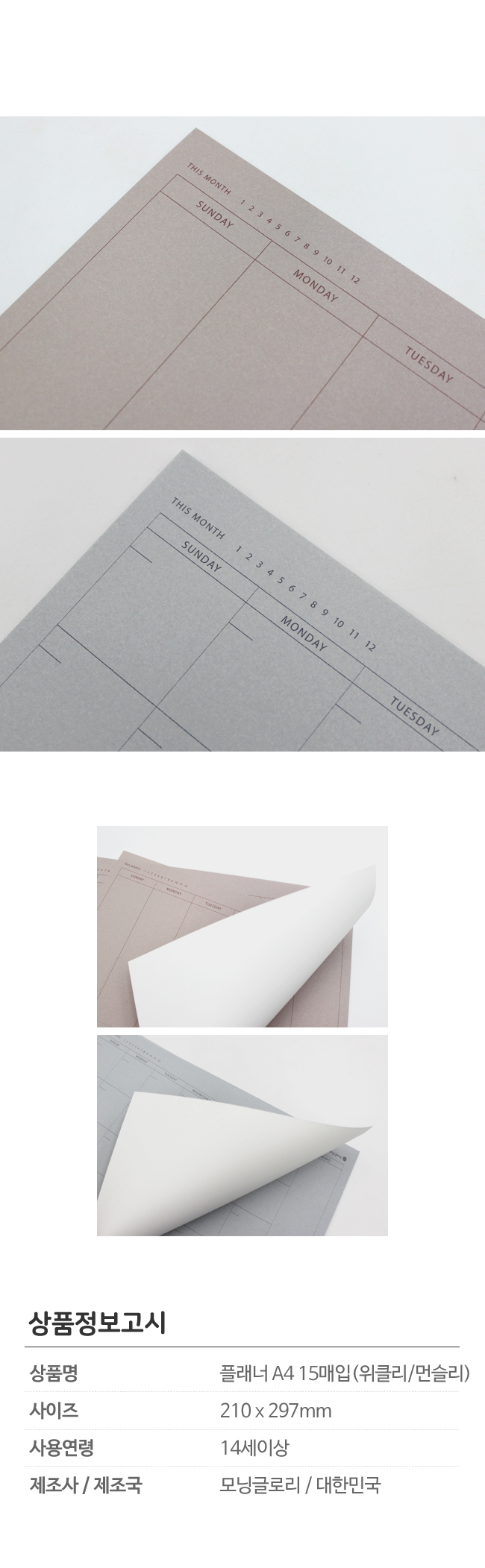 모닝글로리 먼슬리플래너 A4 15매 월간 요약정보 및 구매