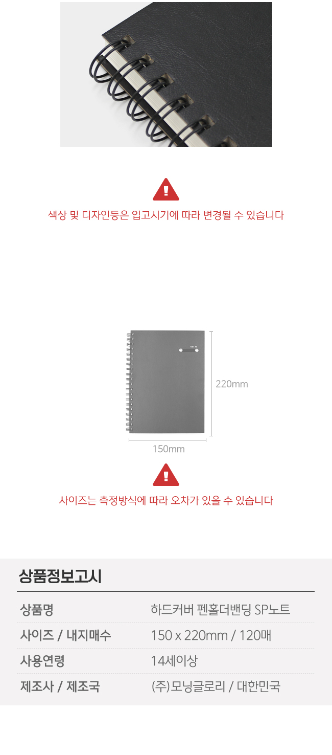 모닝글로리 하드커버 펜홀더밴딩 SP노트 프리미엄 20절 좌철 요약정보 및 구매