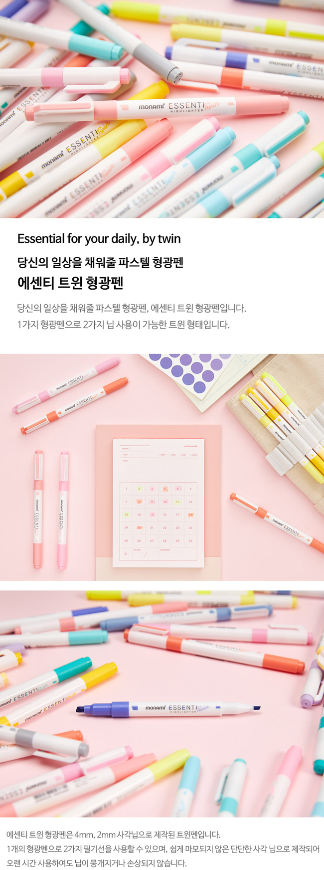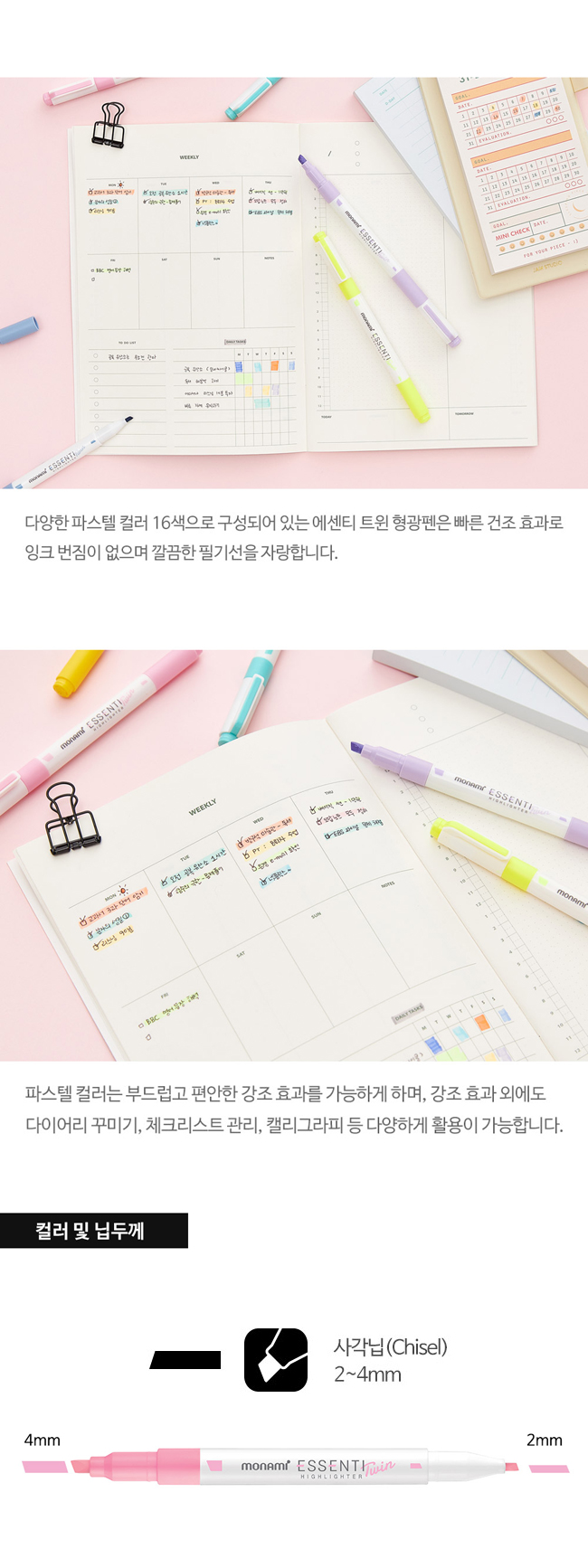 색 이뻐요~! 무난하게 아쿠아그린색 샀는데 눈 피로도 덜하고 은은한 색이라 쓰기 편한 색상이에요 약간 아쉬운게 그 펜촉 이라고 해야하나요...? 그게 좀 좁은거같지만 뭐 강조만 잘되면 되니까요! 만족합니다 ! (스마트스토어에서 등록된 구매후기)
