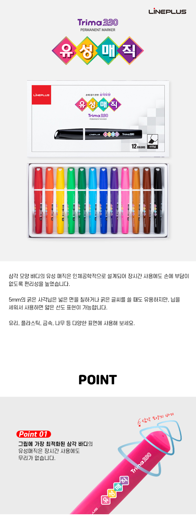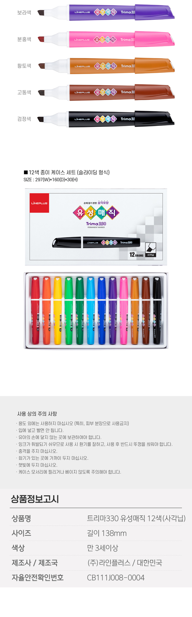라인플러스 트리마330 유성매직 12색 사각닙 요약정보 및 구매