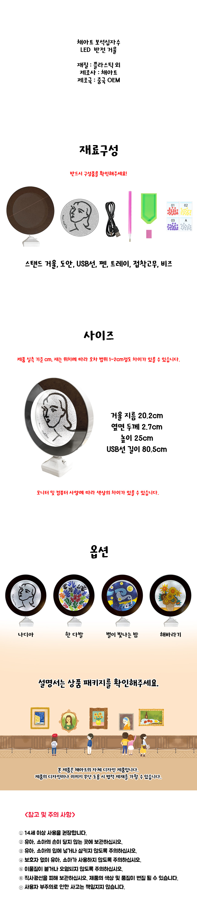 보석십자수 LED 반전 거울 4종 DIY 만들기 요약정보 및 구매
