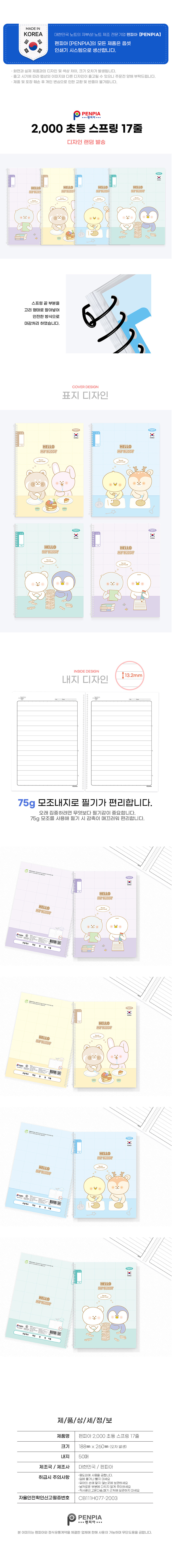 • 펜피아 2000 초등 스프링노트 1-2 무제 17줄 랜덤
