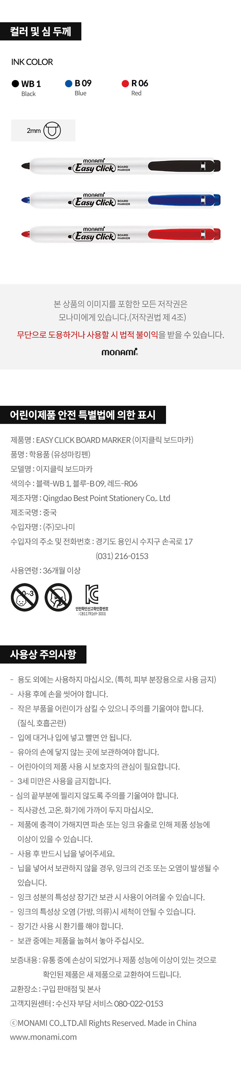 A/S 책임자와 전화번호 또는 소비자상담 관련 전화번호 | 상품페이지 참고 |