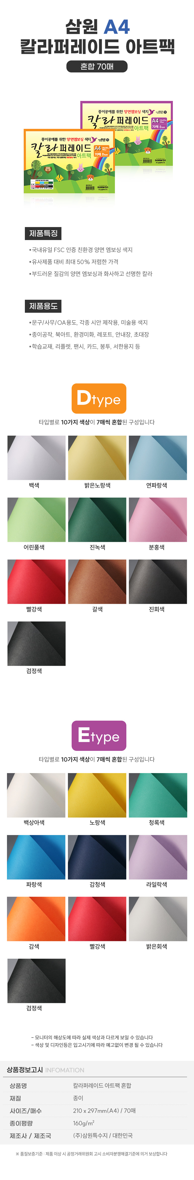 삼원 A4 칼라퍼레이드 아트팩 혼합 요약정보 및 구매