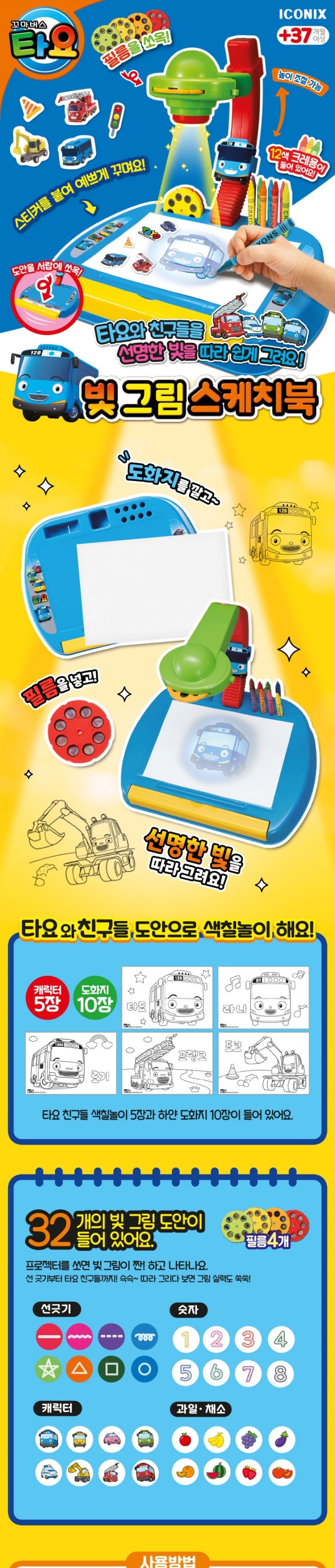 • 35000 타요 빛 그림 스케치북 색칠 공부 그림 그리기 미술놀이