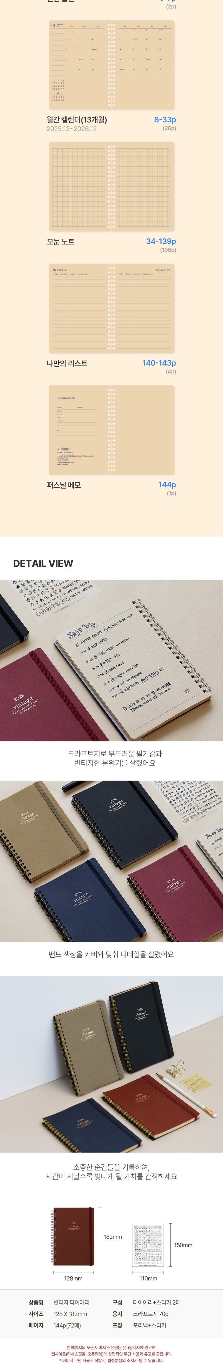 2026년 양지 다이어리 양지사 빈티지 다이어리 2면1개월 밴딩 128x182mm > 다이어리