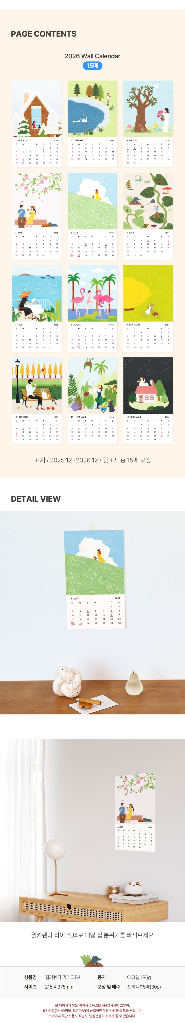 양지다이어리 월카렌다 라이크B4 1면 1개월 215x375mm 캘린더 달력 > 캘린더/달력