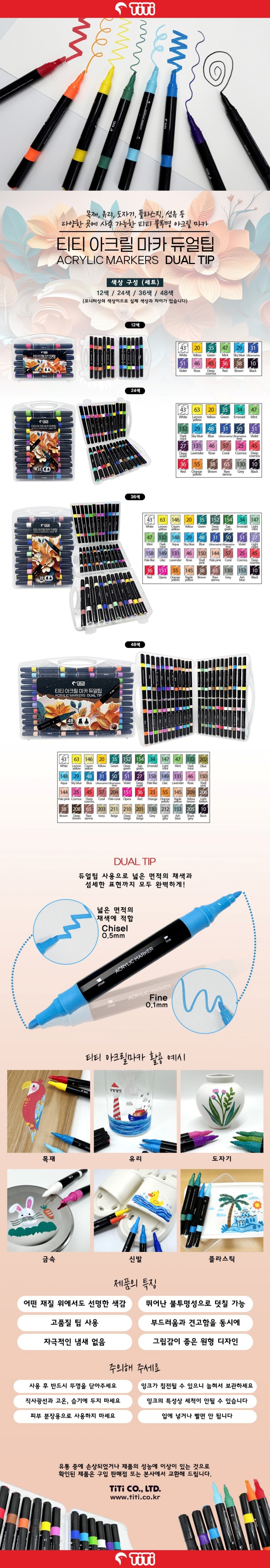• 티티 아크릴 마카 듀얼팁 36색세트 양방향 불투명 마카펜