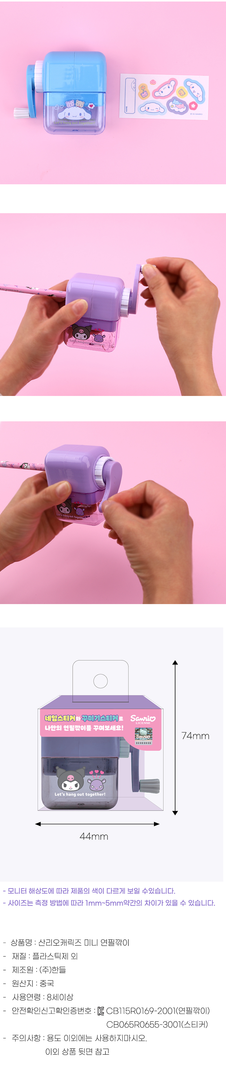 산리오 미니 연필깎이 네임스티커 > 연필깎이