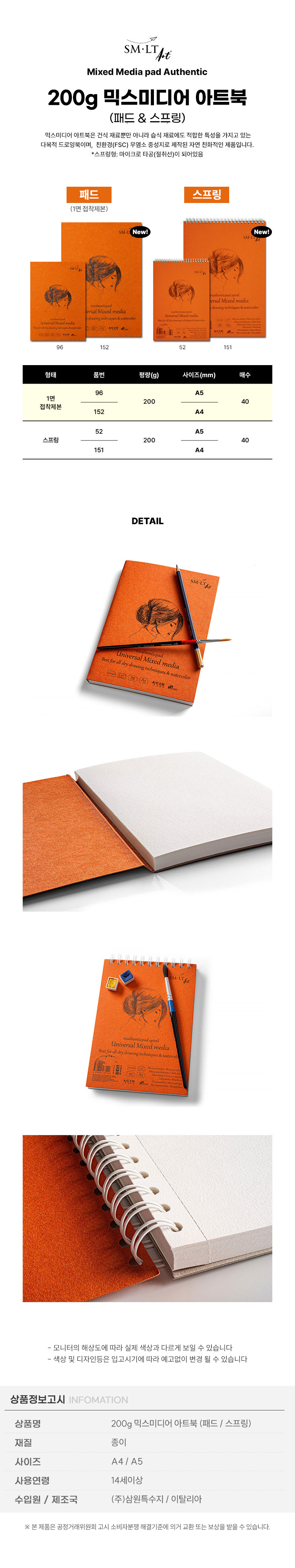 • 삼원 SMLT 아트북 A5 패드 200g 믹스미디어 96