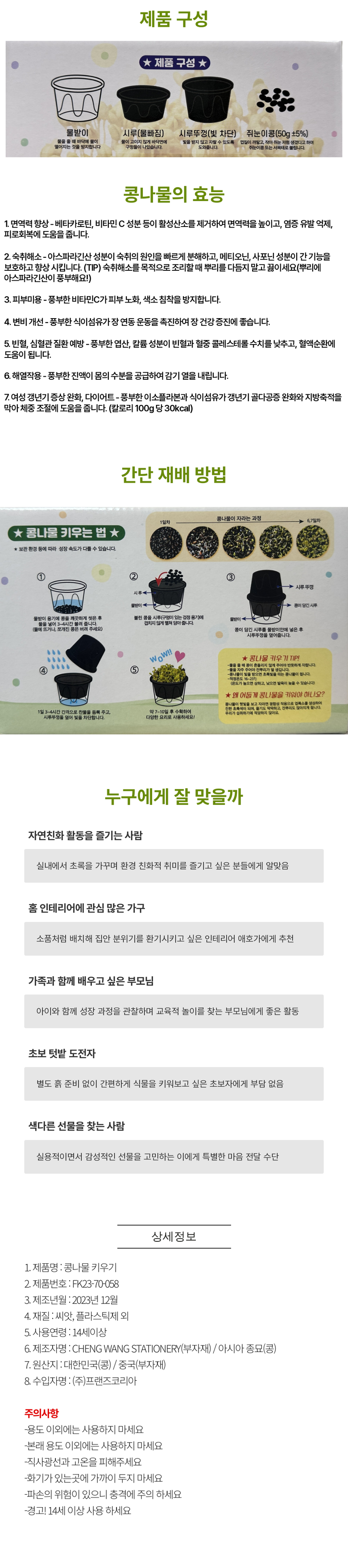 7000 프랜즈 콩나물 키우기 과학학습 체험학습 관찰용 학습용 요약정보 및 구매
