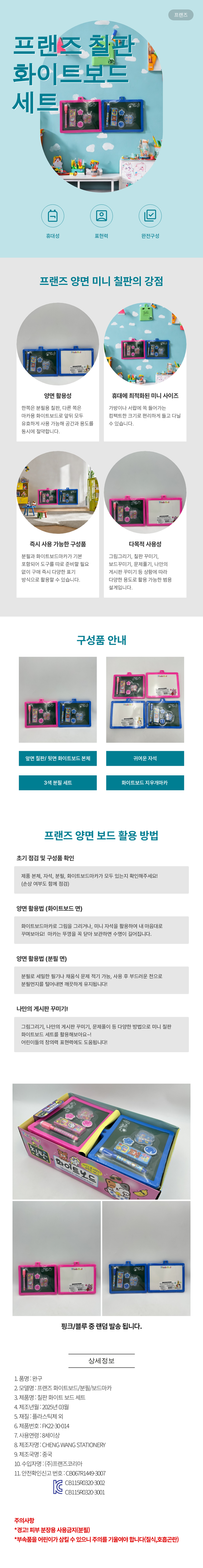 • 3000 프랜즈 칠판 화이트보드 세트 랜덤발송 보드마카 + 분필