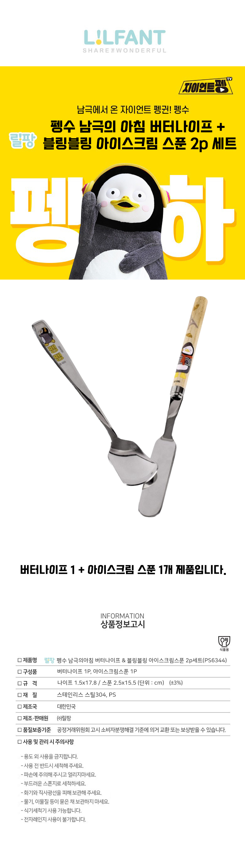 13000 펭수 남극의 아침 버터나이프 블링블링 아이스크림 스푼 2P 세트 요약정보 및 구매