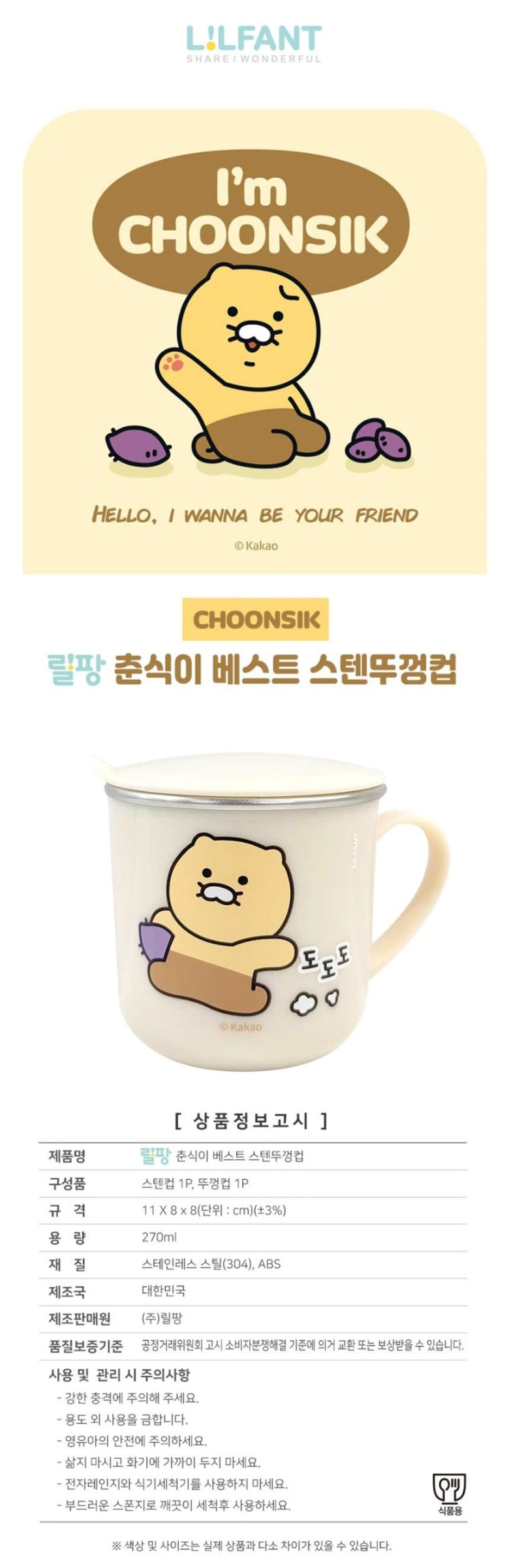 38000 카카오프렌즈 춘식이 베스트 뚜껑 스텐컵 2개 > 유아식기